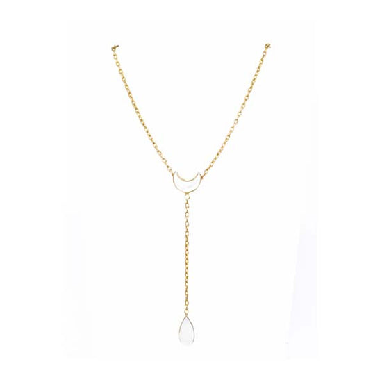 Featuring a lustrous shell symbolizing the moon and a mesmerizing teardrop druzy, this handcrafted necklace is a harmonious blend of natural elements that radiate balance and serenity.